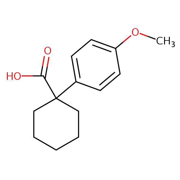1-(4-Methoxyphenyl)cyclohexane-1-carboxylic acid can be analyzed by this reverse phase (RP) HPLC method with simple conditions. The mobile phase contains an acetonitrile (MeCN), water, and phosphoric acid. For Mass-Spec (MS) compatible applications the phosphoric acid needs to be replaced with formic acid. Smaller 3 µm particles columns available for fast UPLC applications. This liquid chromatography method is scalable and can be used for isolation impurities in preparative separation. It also suitable for pharmacokinetics.