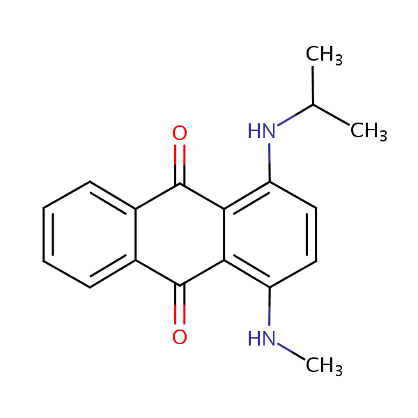 1-(Methylamino)-4-((1-methylethyl)amino)anthraquinone can be analyzed by this reverse phase (RP) HPLC method with simple conditions. The mobile phase contains an acetonitrile (MeCN), water, and phosphoric acid. For Mass-Spec (MS) compatible applications the phosphoric acid needs to be replaced with formic acid. Smaller 3 µm particles columns available for fast UPLC applications. This liquid chromatography method is scalable and can be used for isolation impurities in preparative separation. It also suitable for pharmacokinetics.