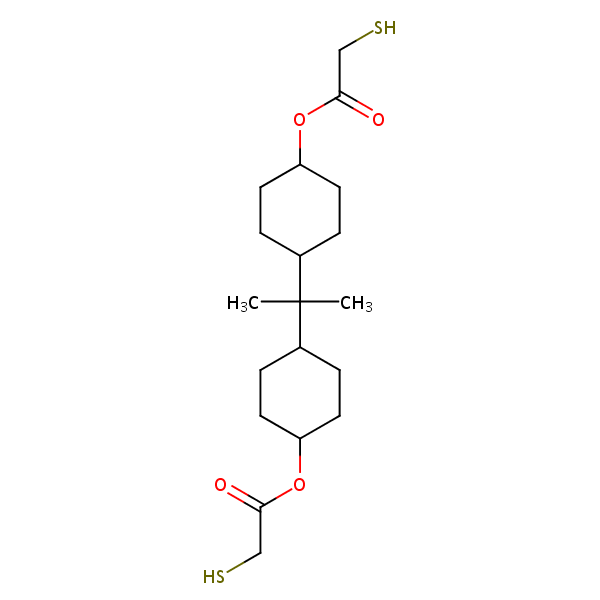 (1-Methylethylidene)di-4,1-cyclohexanediyl bis(mercaptoacetate) can be analyzed by this reverse phase (RP) HPLC method with simple conditions. The mobile phase contains an acetonitrile (MeCN), water, and phosphoric acid. For Mass-Spec (MS) compatible applications the phosphoric acid needs to be replaced with formic acid. Smaller 3 µm particles columns available for fast UPLC applications. This liquid chromatography method is scalable and can be used for isolation impurities in preparative separation. It also suitable for pharmacokinetics.