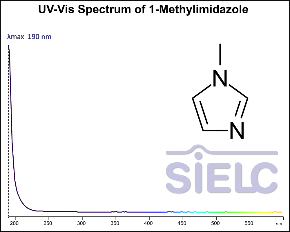 1-Methylimidazole can be analyzed by this reverse phase (RP) HPLC method with simple conditions. The mobile phase contains an acetonitrile (MeCN), water, and phosphoric acid. For Mass-Spec (MS) compatible applications the phosphoric acid needs to be replaced with formic acid. Smaller 3 µm particles columns available for fast UPLC applications. This liquid chromatography method is scalable and can be used for isolation impurities in preparative separation. It also suitable for pharmacokinetics.