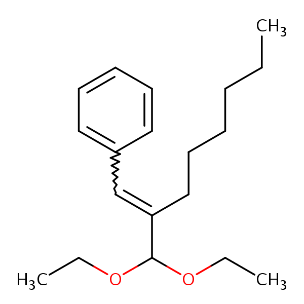 1,1-Diethoxy-2-hexyl-3-phenyl-2-propene can be analyzed by this reverse phase (RP) HPLC method with simple conditions. The mobile phase contains an acetonitrile (MeCN), water, and phosphoric acid. For Mass-Spec (MS) compatible applications the phosphoric acid needs to be replaced with formic acid. Smaller 3 µm particles columns available for fast UPLC applications. This liquid chromatography method is scalable and can be used for isolation impurities in preparative separation. It also suitable for pharmacokinetics.