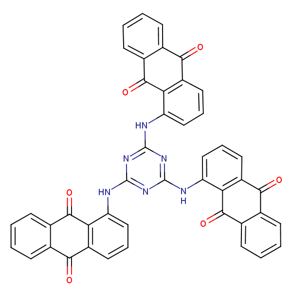 1,1’,1’’-(1,3,5-Triazine-2,4,6-triyltriimino)trisanthraquinone can be analyzed by this reverse phase (RP) HPLC method with simple conditions. The mobile phase contains an acetonitrile (MeCN), water, and phosphoric acid. For Mass-Spec (MS) compatible applications the phosphoric acid needs to be replaced with formic acid. Smaller 3 µm particles columns available for fast UPLC applications. This liquid chromatography method is scalable and can be used for isolation impurities in preparative separation. It also suitable for pharmacokinetics.