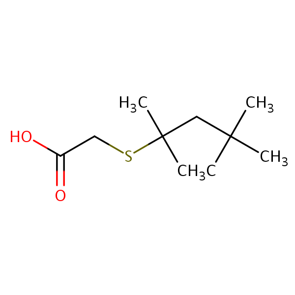 ((1,1,3,3-Tetramethylbutyl)thio)acetic acid can be analyzed by this reverse phase (RP) HPLC method with simple conditions. The mobile phase contains an acetonitrile (MeCN), water, and phosphoric acid. For Mass-Spec (MS) compatible applications the phosphoric acid needs to be replaced with formic acid. Smaller 3 µm particles columns available for fast UPLC applications. This liquid chromatography method is scalable and can be used for isolation impurities in preparative separation. It also suitable for pharmacokinetics.