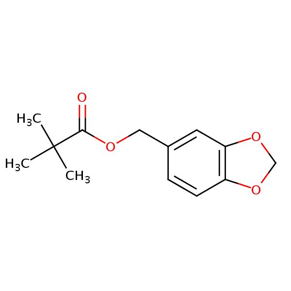 1,3-Benzodioxol-5-ylmethyl pivalate can be analyzed by this reverse phase (RP) HPLC method with simple conditions. The mobile phase contains an acetonitrile (MeCN), water, and phosphoric acid. For Mass-Spec (MS) compatible applications the phosphoric acid needs to be replaced with formic acid. Smaller 3 µm particles columns available for fast UPLC applications. This liquid chromatography method is scalable and can be used for isolation impurities in preparative separation. It also suitable for pharmacokinetics.