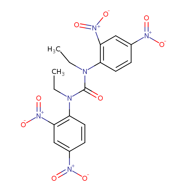 1,3-Bis(2,4-dinitrophenyl)-1,3-diethylurea can be analyzed by this reverse phase (RP) HPLC method with simple conditions. The mobile phase contains an acetonitrile (MeCN), water, and phosphoric acid. For Mass-Spec (MS) compatible applications the phosphoric acid needs to be replaced with formic acid. Smaller 3 µm particles columns available for fast UPLC applications. This liquid chromatography method is scalable and can be used for isolation impurities in preparative separation. It also suitable for pharmacokinetics.