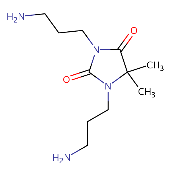 1,3-Bis(3-aminopropyl)-5,5-dimethylimidazolidine-2,4-dione can be analyzed by this reverse phase (RP) HPLC method with simple conditions. The mobile phase contains an acetonitrile (MeCN), water, and phosphoric acid. For Mass-Spec (MS) compatible applications the phosphoric acid needs to be replaced with formic acid. Smaller 3 µm particles columns available for fast UPLC applications. This liquid chromatography method is scalable and can be used for isolation impurities in preparative separation. It also suitable for pharmacokinetics.