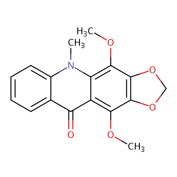 1,3-Dioxolo[4,5-b]acridin-10(5H)-one, 4,11-dimethoxy-5-methyl- can be analyzed by this reverse phase (RP) HPLC method with simple conditions. The mobile phase contains an acetonitrile (MeCN), water, and phosphoric acid. For Mass-Spec (MS) compatible applications the phosphoric acid needs to be replaced with formic acid. Smaller 3 µm particles columns available for fast UPLC applications. This liquid chromatography method is scalable and can be used for isolation impurities in preparative separation. It also suitable for pharmacokinetics.