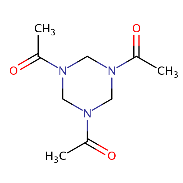 1,3,5-Triacetylhexahydro-1,3,5-triazine can be analyzed by this reverse phase (RP) HPLC method with simple conditions. The mobile phase contains an acetonitrile (MeCN), water, and phosphoric acid. For Mass-Spec (MS) compatible applications the phosphoric acid needs to be replaced with formic acid. Smaller 3 µm particles columns available for fast UPLC applications. This liquid chromatography method is scalable and can be used for isolation impurities in preparative separation. It also suitable for pharmacokinetics.