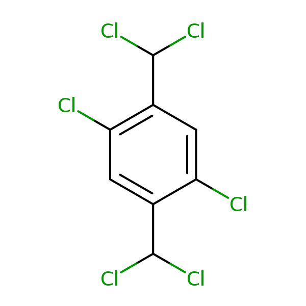 1,4-Dichloro-2,5-bis(dichloromethyl)benzene can be analyzed by this reverse phase (RP) HPLC method with simple conditions. The mobile phase contains an acetonitrile (MeCN), water, and phosphoric acid. For Mass-Spec (MS) compatible applications the phosphoric acid needs to be replaced with formic acid. Smaller 3 µm particles columns available for fast UPLC applications. This liquid chromatography method is scalable and can be used for isolation impurities in preparative separation. It also suitable for pharmacokinetics.