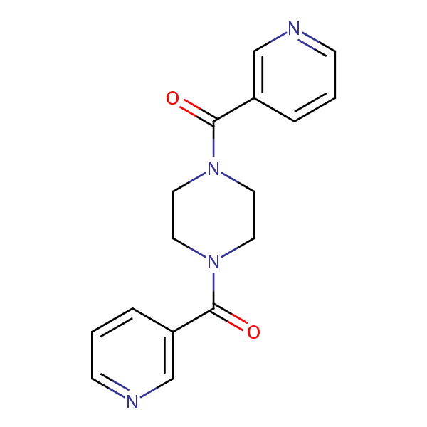1,4-Dinicotinoylpiperazine can be analyzed by this reverse phase (RP) HPLC method with simple conditions. The mobile phase contains an acetonitrile (MeCN), water, and phosphoric acid. For Mass-Spec (MS) compatible applications the phosphoric acid needs to be replaced with formic acid. Smaller 3 µm particles columns available for fast UPLC applications. This liquid chromatography method is scalable and can be used for isolation impurities in preparative separation. It also suitable for pharmacokinetics.