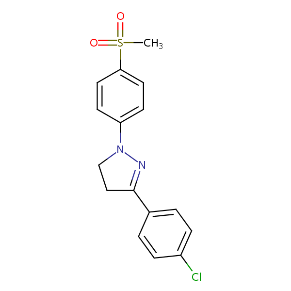1H-Pyrazole, 3-(4-chlorophenyl)-4,5-dihydro-1-[4-(methylsulfonyl)phenyl]- can be analyzed by this reverse phase (RP) HPLC method with simple conditions. The mobile phase contains an acetonitrile (MeCN), water, and phosphoric acid. For Mass-Spec (MS) compatible applications the phosphoric acid needs to be replaced with formic acid. Smaller 3 µm particles columns available for fast UPLC applications. This liquid chromatography method is scalable and can be used for isolation impurities in preparative separation. It also suitable for pharmacokinetics.