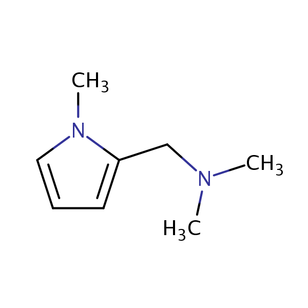 1H-Pyrrole-2-methanamine, N,N,1-trimethyl- can be analyzed by this reverse phase (RP) HPLC method with simple conditions. The mobile phase contains an acetonitrile (MeCN), water, and phosphoric acid. For Mass-Spec (MS) compatible applications the phosphoric acid needs to be replaced with formic acid. Smaller 3 µm particles columns available for fast UPLC applications. This liquid chromatography method is scalable and can be used for isolation impurities in preparative separation. It also suitable for pharmacokinetics.