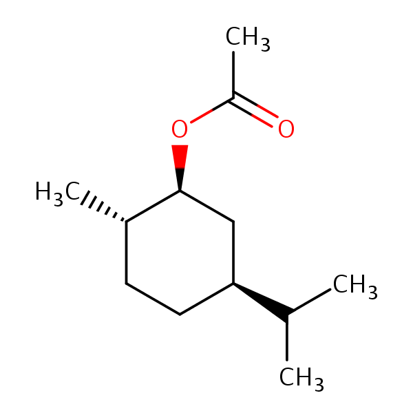 (1S-(1alpha,2beta,5alpha))-5-(Isopropyl)-2-methylcyclohexyl acetate can be analyzed by this reverse phase (RP) HPLC method with simple conditions. The mobile phase contains an acetonitrile (MeCN), water, and phosphoric acid. For Mass-Spec (MS) compatible applications the phosphoric acid needs to be replaced with formic acid. Smaller 3 µm particles columns available for fast UPLC applications. This liquid chromatography method is scalable and can be used for isolation impurities in preparative separation. It also suitable for pharmacokinetics.