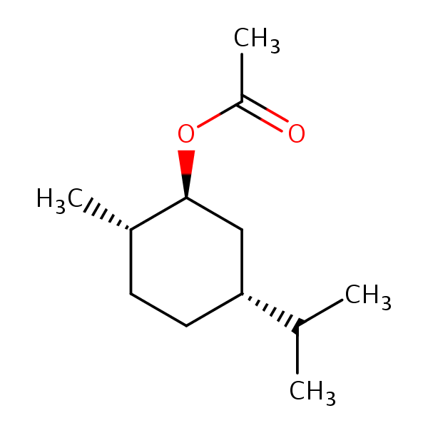 (1S-(1alpha,2beta,5beta))-5-(Isopropyl)-2-methylcyclohexyl acetate can be analyzed by this reverse phase (RP) HPLC method with simple conditions. The mobile phase contains an acetonitrile (MeCN), water, and phosphoric acid. For Mass-Spec (MS) compatible applications the phosphoric acid needs to be replaced with formic acid. Smaller 3 µm particles columns available for fast UPLC applications. This liquid chromatography method is scalable and can be used for isolation impurities in preparative separation. It also suitable for pharmacokinetics.