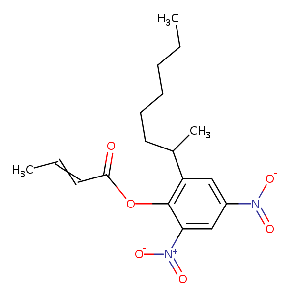 2-(1-Methylheptyl)-4,6-dinitrophenyl crotonate can be analyzed by this reverse phase (RP) HPLC method with simple conditions. The mobile phase contains an acetonitrile (MeCN), water, and phosphoric acid. For Mass-Spec (MS) compatible applications the phosphoric acid needs to be replaced with formic acid. Smaller 3 µm particles columns available for fast UPLC applications. This liquid chromatography method is scalable and can be used for isolation impurities in preparative separation. It also suitable for pharmacokinetics.