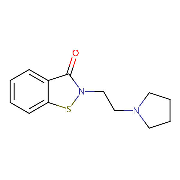 2-(2-(1-Pyrrolidinyl)ethyl)-1,2-benzisothiazol-3(2H)-one can be analyzed by this reverse phase (RP) HPLC method with simple conditions. The mobile phase contains an acetonitrile (MeCN), water, and phosphoric acid. For Mass-Spec (MS) compatible applications the phosphoric acid needs to be replaced with formic acid. Smaller 3 µm particles columns available for fast UPLC applications. This liquid chromatography method is scalable and can be used for isolation impurities in preparative separation. It also suitable for pharmacokinetics.