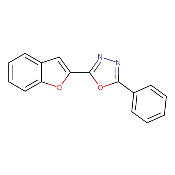 2-(2-Benzofuryl)-5-phenyl-1,3,4-oxadiazole can be analyzed by this reverse phase (RP) HPLC method with simple conditions. The mobile phase contains an acetonitrile (MeCN), water, and phosphoric acid. For Mass-Spec (MS) compatible applications the phosphoric acid needs to be replaced with formic acid. Smaller 3 µm particles columns available for fast UPLC applications. This liquid chromatography method is scalable and can be used for isolation impurities in preparative separation. It also suitable for pharmacokinetics.