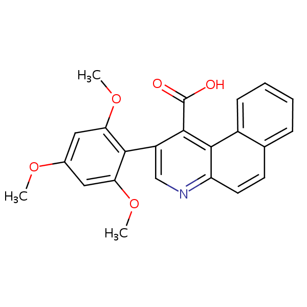 2-(2,4,6-Trimethoxyphenyl)benzo(f)quinoline-1-carboxylic acid can be analyzed by this reverse phase (RP) HPLC method with simple conditions. The mobile phase contains an acetonitrile (MeCN), water, and phosphoric acid. For Mass-Spec (MS) compatible applications the phosphoric acid needs to be replaced with formic acid. Smaller 3 µm particles columns available for fast UPLC applications. This liquid chromatography method is scalable and can be used for isolation impurities in preparative separation. It also suitable for pharmacokinetics.