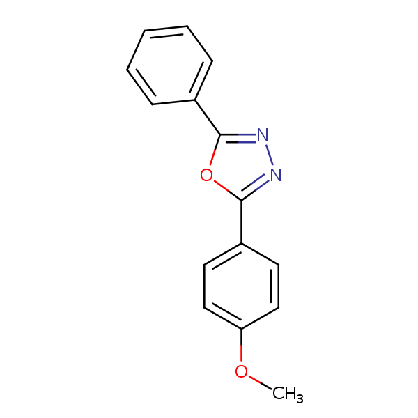 2-(4-Methoxyphenyl)-5-phenyl-1,3,4-oxadiazole can be analyzed by this reverse phase (RP) HPLC method with simple conditions. The mobile phase contains an acetonitrile (MeCN), water, and phosphoric acid. For Mass-Spec (MS) compatible applications the phosphoric acid needs to be replaced with formic acid. Smaller 3 µm particles columns available for fast UPLC applications. This liquid chromatography method is scalable and can be used for isolation impurities in preparative separation. It also suitable for pharmacokinetics.