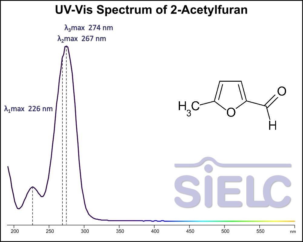 2-Acetylfuran can be analyzed by this reverse phase (RP) HPLC method with simple conditions. The mobile phase contains an acetonitrile (MeCN), water, and phosphoric acid. For Mass-Spec (MS) compatible applications the phosphoric acid needs to be replaced with formic acid. Smaller 3 µm particles columns available for fast UPLC applications. This liquid chromatography method is scalable and can be used for isolation impurities in preparative separation. It also suitable for pharmacokinetics.