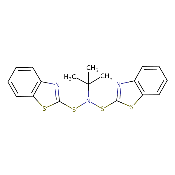 2-Benzothiazolesulfenamide, N-(2-benzothiazolylthio)-N-(1,1-dimethylethyl)- can be analyzed by this reverse phase (RP) HPLC method with simple conditions. The mobile phase contains an acetonitrile (MeCN), water, and phosphoric acid. For Mass-Spec (MS) compatible applications the phosphoric acid needs to be replaced with formic acid. Smaller 3 µm particles columns available for fast UPLC applications. This liquid chromatography method is scalable and can be used for isolation impurities in preparative separation. It also suitable for pharmacokinetics.