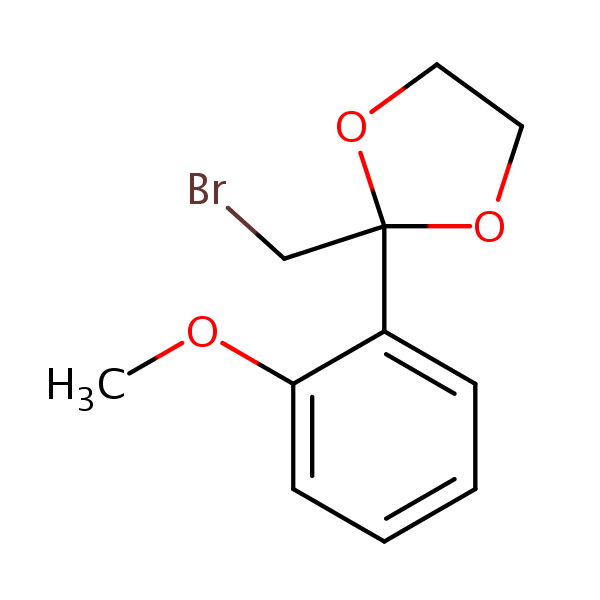 2-(Bromomethyl)-2-(2-methoxyphenyl)-1,3-dioxolane can be analyzed by this reverse phase (RP) HPLC method with simple conditions. The mobile phase contains an acetonitrile (MeCN), water, and phosphoric acid. For Mass-Spec (MS) compatible applications the phosphoric acid needs to be replaced with formic acid. Smaller 3 µm particles columns available for fast UPLC applications. This liquid chromatography method is scalable and can be used for isolation impurities in preparative separation. It also suitable for pharmacokinetics.