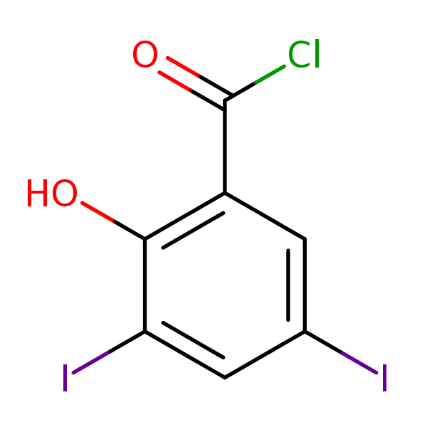 2-Hydroxy-3,5-diiodobenzoyl chloride can be analyzed by this reverse phase (RP) HPLC method with simple conditions. The mobile phase contains an acetonitrile (MeCN), water, and phosphoric acid. For Mass-Spec (MS) compatible applications the phosphoric acid needs to be replaced with formic acid. Smaller 3 µm particles columns available for fast UPLC applications. This liquid chromatography method is scalable and can be used for isolation impurities in preparative separation. It also suitable for pharmacokinetics.
