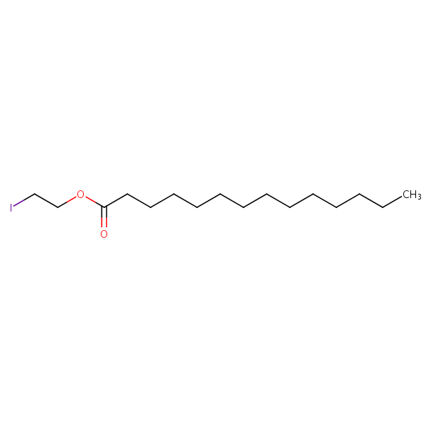 2-Iodoethyl myristate can be analyzed by this reverse phase (RP) HPLC method with simple conditions. The mobile phase contains an acetonitrile (MeCN), water, and phosphoric acid. For Mass-Spec (MS) compatible applications the phosphoric acid needs to be replaced with formic acid. Smaller 3 µm particles columns available for fast UPLC applications. This liquid chromatography method is scalable and can be used for isolation impurities in preparative separation. It also suitable for pharmacokinetics.