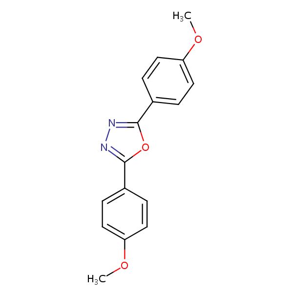 2,5-Bis(4-methoxyphenyl)-1,3,4-oxadiazole can be analyzed by this reverse phase (RP) HPLC method with simple conditions. The mobile phase contains an acetonitrile (MeCN), water, and phosphoric acid. For Mass-Spec (MS) compatible applications the phosphoric acid needs to be replaced with formic acid. Smaller 3 µm particles columns available for fast UPLC applications. This liquid chromatography method is scalable and can be used for isolation impurities in preparative separation. It also suitable for pharmacokinetics.