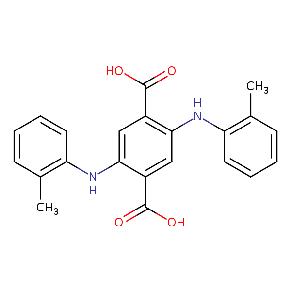 2,5-Di-o-toluidinoterephthalic acid can be analyzed by this reverse phase (RP) HPLC method with simple conditions. The mobile phase contains an acetonitrile (MeCN), water, and phosphoric acid. For Mass-Spec (MS) compatible applications the phosphoric acid needs to be replaced with formic acid. Smaller 3 µm particles columns available for fast UPLC applications. This liquid chromatography method is scalable and can be used for isolation impurities in preparative separation. It also suitable for pharmacokinetics.