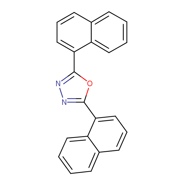 2,5-Di(1-naphthyl)-1,3,4-oxadiazole can be analyzed by this reverse phase (RP) HPLC method with simple conditions. The mobile phase contains an acetonitrile (MeCN), water, and phosphoric acid. For Mass-Spec (MS) compatible applications the phosphoric acid needs to be replaced with formic acid. Smaller 3 µm particles columns available for fast UPLC applications. This liquid chromatography method is scalable and can be used for isolation impurities in preparative separation. It also suitable for pharmacokinetics.