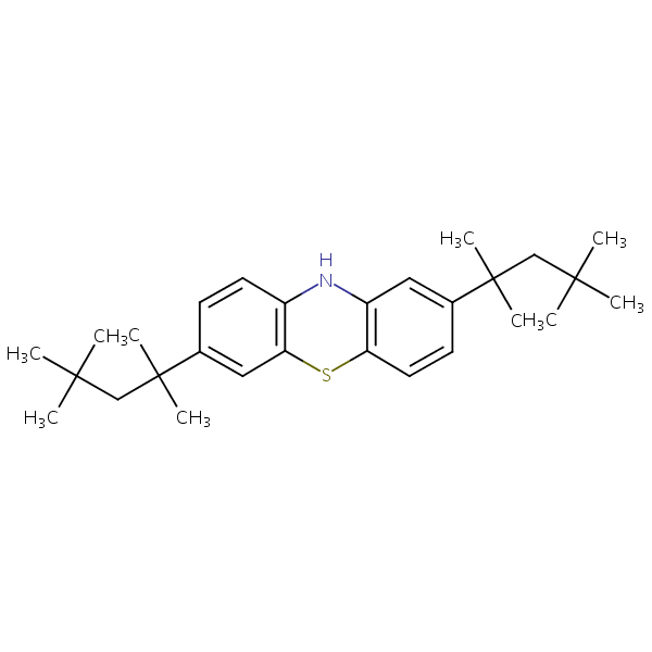 2,7-Bis(1,1,3,3-tetramethylbutyl)-10H-phenothiazine can be analyzed by this reverse phase (RP) HPLC method with simple conditions. The mobile phase contains an acetonitrile (MeCN), water, and phosphoric acid. For Mass-Spec (MS) compatible applications the phosphoric acid needs to be replaced with formic acid. Smaller 3 µm particles columns available for fast UPLC applications. This liquid chromatography method is scalable and can be used for isolation impurities in preparative separation. It also suitable for pharmacokinetics.