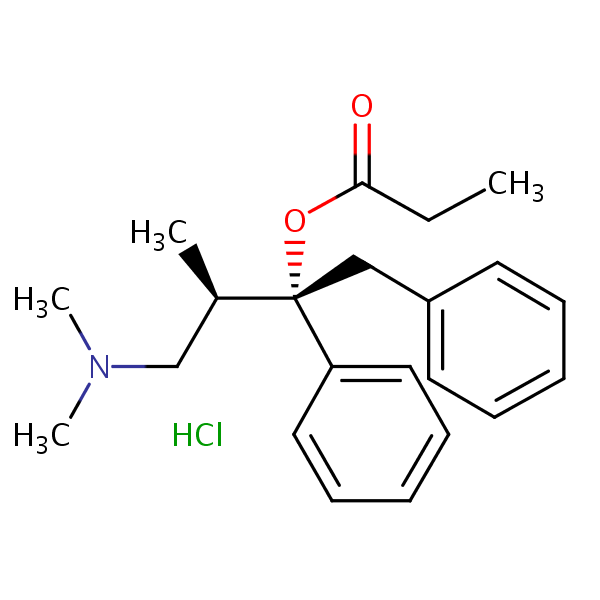 (2S,3R)-(+)-4-(Dimethylamino)-3-methyl-1,2-diphenyl-2-butanol propionate hydrochloride can be analyzed by this reverse phase (RP) HPLC method with simple conditions. The mobile phase contains an acetonitrile (MeCN), water, and phosphoric acid. For Mass-Spec (MS) compatible applications the phosphoric acid needs to be replaced with formic acid. Smaller 3 µm particles columns available for fast UPLC applications. This liquid chromatography method is scalable and can be used for isolation impurities in preparative separation. It also suitable for pharmacokinetics.