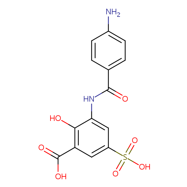 3-((4-Aminobenzoyl)amino)-5-sulphosalicylic acid can be analyzed by this reverse phase (RP) HPLC method with simple conditions. The mobile phase contains an acetonitrile (MeCN), water, and phosphoric acid. For Mass-Spec (MS) compatible applications the phosphoric acid needs to be replaced with formic acid. Smaller 3 µm particles columns available for fast UPLC applications. This liquid chromatography method is scalable and can be used for isolation impurities in preparative separation. It also suitable for pharmacokinetics.