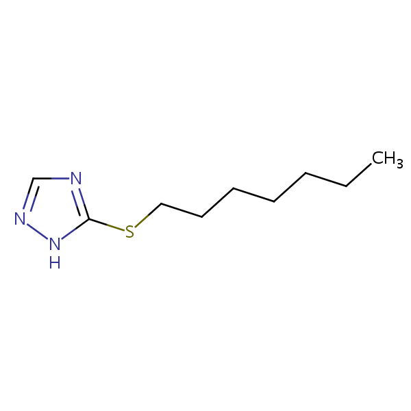 3-(Heptylthio)-1H-1,2,4-triazole can be analyzed by this reverse phase (RP) HPLC method with simple conditions. The mobile phase contains an acetonitrile (MeCN), water, and phosphoric acid. For Mass-Spec (MS) compatible applications the phosphoric acid needs to be replaced with formic acid. Smaller 3 µm particles columns available for fast UPLC applications. This liquid chromatography method is scalable and can be used for isolation impurities in preparative separation. It also suitable for pharmacokinetics.