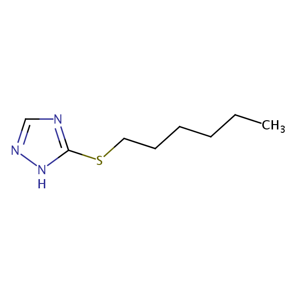 3-(Hexylthio)-1H-1,2,4-triazole can be analyzed by this reverse phase (RP) HPLC method with simple conditions. The mobile phase contains an acetonitrile (MeCN), water, and phosphoric acid. For Mass-Spec (MS) compatible applications the phosphoric acid needs to be replaced with formic acid. Smaller 3 µm particles columns available for fast UPLC applications. This liquid chromatography method is scalable and can be used for isolation impurities in preparative separation. It also suitable for pharmacokinetics.