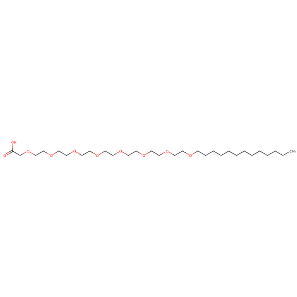 3,6,9,12,15,18,21,24-Octaoxaheptatriacontanoic acid can be analyzed by this reverse phase (RP) HPLC method with simple conditions. The mobile phase contains an acetonitrile (MeCN), water, and phosphoric acid. For Mass-Spec (MS) compatible applications the phosphoric acid needs to be replaced with formic acid. Smaller 3 µm particles columns available for fast UPLC applications. This liquid chromatography method is scalable and can be used for isolation impurities in preparative separation. It also suitable for pharmacokinetics.