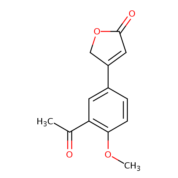 4-(3-Acetyl-4-methoxyphenyl)furan-2(5H)-one can be analyzed by this reverse phase (RP) HPLC method with simple conditions. The mobile phase contains an acetonitrile (MeCN), water, and phosphoric acid. For Mass-Spec (MS) compatible applications the phosphoric acid needs to be replaced with formic acid. Smaller 3 µm particles columns available for fast UPLC applications. This liquid chromatography method is scalable and can be used for isolation impurities in preparative separation. It also suitable for pharmacokinetics.