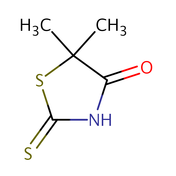 4-Thiazolidinone, 5,5-dimethyl-2-thioxo- can be analyzed by this reverse phase (RP) HPLC method with simple conditions. The mobile phase contains an acetonitrile (MeCN), water, and phosphoric acid. For Mass-Spec (MS) compatible applications the phosphoric acid needs to be replaced with formic acid. Smaller 3 µm particles columns available for fast UPLC applications. This liquid chromatography method is scalable and can be used for isolation impurities in preparative separation. It also suitable for pharmacokinetics.