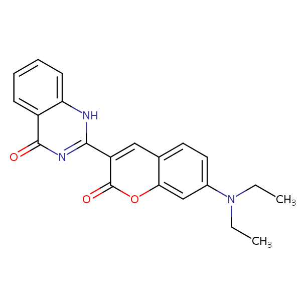 4(1H)-Quinazolinone, 2-[7-(diethylamino)-2-oxo-2H-1-benzopyran-3-yl]- can be analyzed by this reverse phase (RP) HPLC method with simple conditions. The mobile phase contains an acetonitrile (MeCN), water, and phosphoric acid. For Mass-Spec (MS) compatible applications the phosphoric acid needs to be replaced with formic acid. Smaller 3 µm particles columns available for fast UPLC applications. This liquid chromatography method is scalable and can be used for isolation impurities in preparative separation. It also suitable for pharmacokinetics.