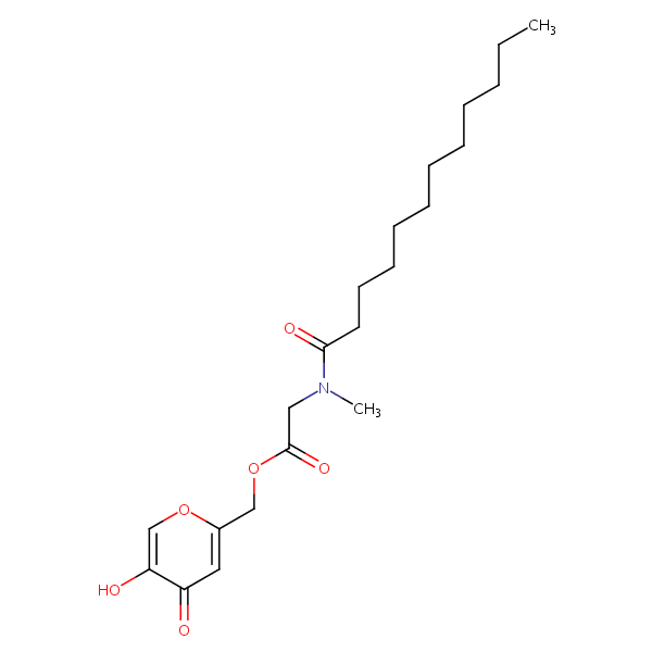 (5-Hydroxy-4-oxo-4H-pyran-2-yl)methyl N-methyl-N-(1-oxododecyl)aminoacetate can be analyzed by this reverse phase (RP) HPLC method with simple conditions. The mobile phase contains an acetonitrile (MeCN), water, and phosphoric acid. For Mass-Spec (MS) compatible applications the phosphoric acid needs to be replaced with formic acid. Smaller 3 µm particles columns available for fast UPLC applications. This liquid chromatography method is scalable and can be used for isolation impurities in preparative separation. It also suitable for pharmacokinetics.