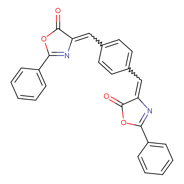 5(4H)-Oxazolone, 4,4’-(1,4-phenylenedimethylidyne)bis[2-phenyl- can be analyzed by this reverse phase (RP) HPLC method with simple conditions. The mobile phase contains an acetonitrile (MeCN), water, and phosphoric acid. For Mass-Spec (MS) compatible applications the phosphoric acid needs to be replaced with formic acid. Smaller 3 µm particles columns available for fast UPLC applications. This liquid chromatography method is scalable and can be used for isolation impurities in preparative separation. It also suitable for pharmacokinetics.