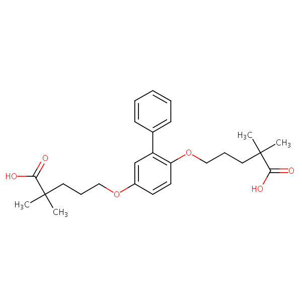 5,5’-(1,1’-Biphenyl)-2,5-dylbis(oxy)(2,2-dimethylpentanoic acid) can be analyzed by this reverse phase (RP) HPLC method with simple conditions. The mobile phase contains an acetonitrile (MeCN), water, and phosphoric acid. For Mass-Spec (MS) compatible applications the phosphoric acid needs to be replaced with formic acid. Smaller 3 µm particles columns available for fast UPLC applications. This liquid chromatography method is scalable and can be used for isolation impurities in preparative separation. It also suitable for pharmacokinetics.