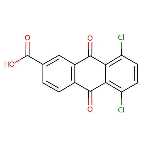 5,8-Dichloro-9,10-dihydro-9,10-dioxo-2-anthroic acid can be analyzed by this reverse phase (RP) HPLC method with simple conditions. The mobile phase contains an acetonitrile (MeCN), water, and phosphoric acid. For Mass-Spec (MS) compatible applications the phosphoric acid needs to be replaced with formic acid. Smaller 3 µm particles columns available for fast UPLC applications. This liquid chromatography method is scalable and can be used for isolation impurities in preparative separation. It also suitable for pharmacokinetics.