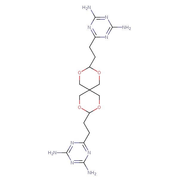 6,6’-(2,4,8,10-Tetraoxaspiro(5.5)undecane-3,9-diyldiethylene)bis(1,3,5-triazine 2,4-diamine) can be analyzed by this reverse phase (RP) HPLC method with simple conditions. The mobile phase contains an acetonitrile (MeCN), water, and phosphoric acid. For Mass-Spec (MS) compatible applications the phosphoric acid needs to be replaced with formic acid. Smaller 3 µm particles columns available for fast UPLC applications. This liquid chromatography method is scalable and can be used for isolation impurities in preparative separation. It also suitable for pharmacokinetics.