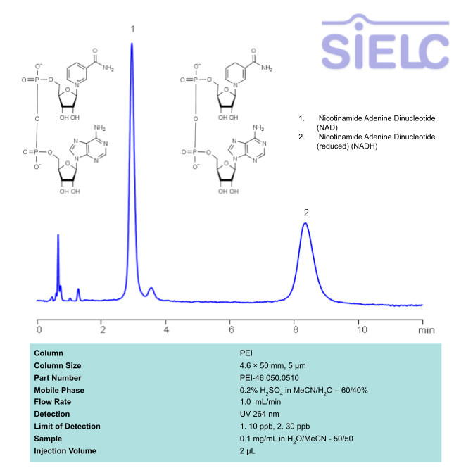 HPLC Method for Nicotinamide Adenine Dinucleotide (NAD), Nicotinamide Adenine Dinucleotide (reduced) (NADH) on PEI by SIELC Technologies