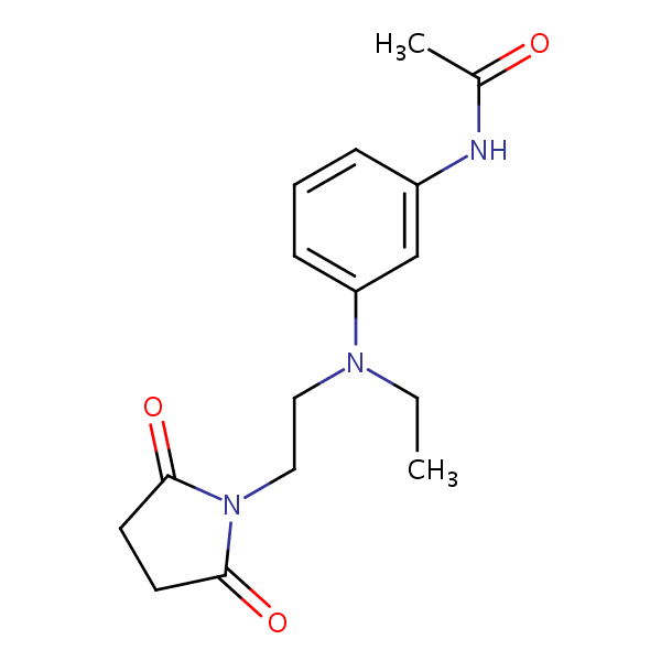 Acetamide, N-[3-[[(2,5-dioxo-1-pyrrolidinyl)ethyl]ethylamino]phenyl]- can be analyzed by this reverse phase (RP) HPLC method with simple conditions. The mobile phase contains an acetonitrile (MeCN), water, and phosphoric acid. For Mass-Spec (MS) compatible applications the phosphoric acid needs to be replaced with formic acid. Smaller 3 µm particles columns available for fast UPLC applications. This liquid chromatography method is scalable and can be used for isolation impurities in preparative separation. It also suitable for pharmacokinetics.