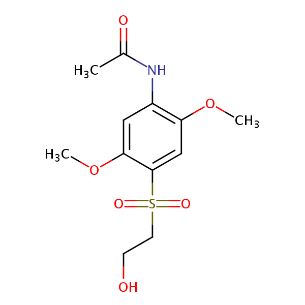 Acetamide, N-[4-[(2-hydroxyethyl)sulfonyl]-2,5-dimethoxyphenyl]- can be analyzed by this reverse phase (RP) HPLC method with simple conditions. The mobile phase contains an acetonitrile (MeCN), water, and phosphoric acid. For Mass-Spec (MS) compatible applications the phosphoric acid needs to be replaced with formic acid. Smaller 3 µm particles columns available for fast UPLC applications. This liquid chromatography method is scalable and can be used for isolation impurities in preparative separation. It also suitable for pharmacokinetics.