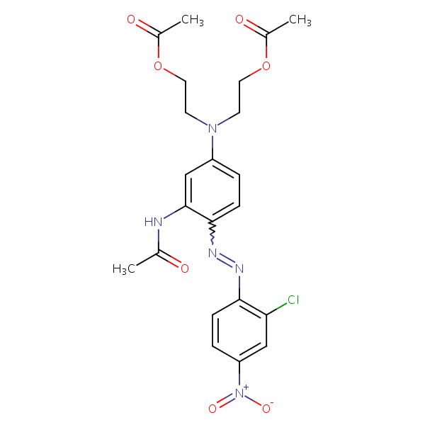 Acetamide, N-[5-[bis[2-(acetyloxy)ethyl]amino]-2-[(2-chloro-4-nitrophenyl)azo]phenyl]- can be analyzed by this reverse phase (RP) HPLC method with simple conditions. The mobile phase contains an acetonitrile (MeCN), water, and phosphoric acid. For Mass-Spec (MS) compatible applications the phosphoric acid needs to be replaced with formic acid. Smaller 3 µm particles columns available for fast UPLC applications. This liquid chromatography method is scalable and can be used for isolation impurities in preparative separation. It also suitable for pharmacokinetics.
