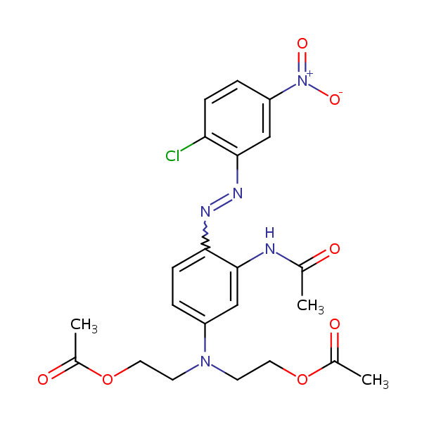 Acetamide, N-[5-[bis[2-(acetyloxy)ethyl]amino]-2-[(2-chloro-5-nitrophenyl)azo]phenyl]- can be analyzed by this reverse phase (RP) HPLC method with simple conditions. The mobile phase contains an acetonitrile (MeCN), water, and phosphoric acid. For Mass-Spec (MS) compatible applications the phosphoric acid needs to be replaced with formic acid. Smaller 3 µm particles columns available for fast UPLC applications. This liquid chromatography method is scalable and can be used for isolation impurities in preparative separation. It also suitable for pharmacokinetics.